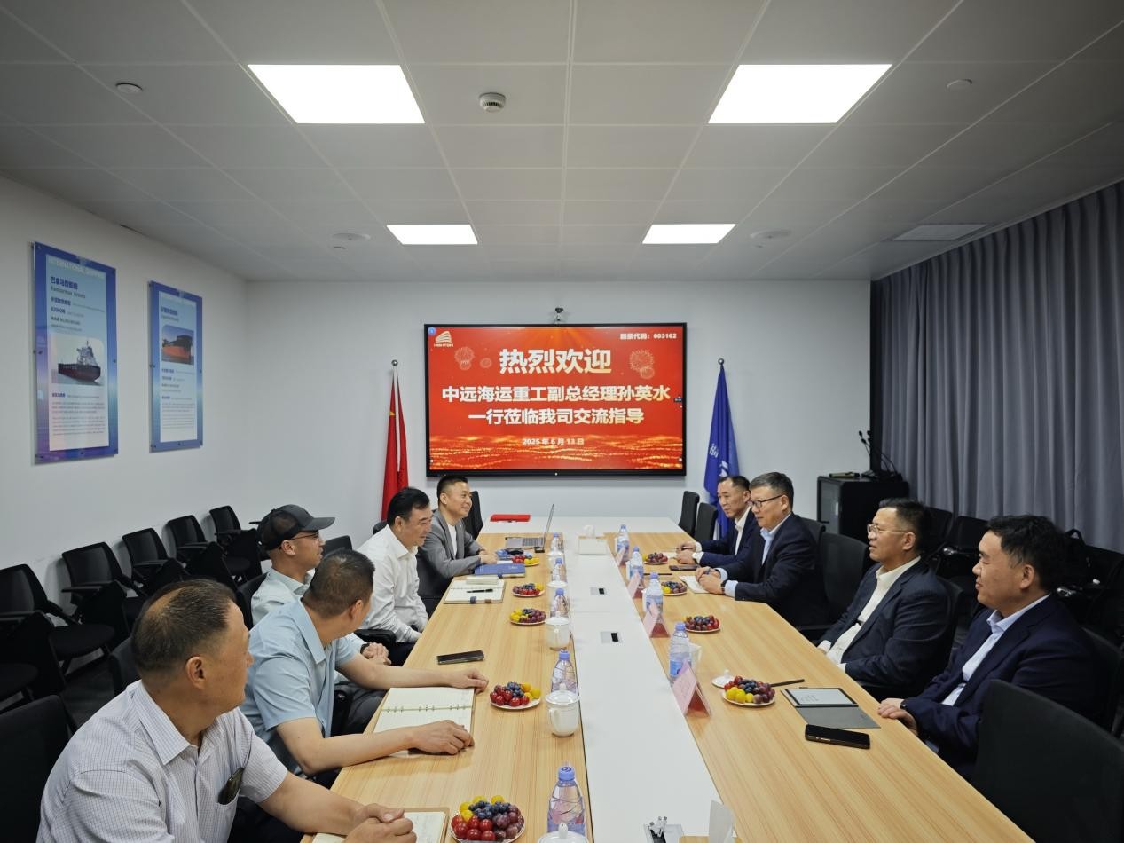 6月13日,中遠(yuǎn)海運(yùn)重工有限公司副總經(jīng)理孫英水、經(jīng)營中心總經(jīng)理俞健、經(jīng)營中心副總經(jīng)理郭志強(qiáng)、經(jīng)營中心總管孫泉一行到訪海通發(fā)展,雙方就開展戰(zhàn)略合作展開交流。海通發(fā)展董事長曾而斌、船管中心總經(jīng)理梁杰、船管中心副總經(jīng)理董學(xué)海、人資行政中心副總經(jīng)理李磊、機(jī)務(wù)技術(shù)總監(jiān)曹成海等參加。