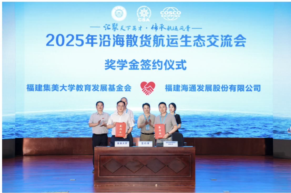 會上,海通發(fā)展與集美大學共同簽署了“海通獎學金”捐贈協(xié)議書,用于支持集美大學航運教育發(fā)展事業(yè),獎學金設立期限為5年。